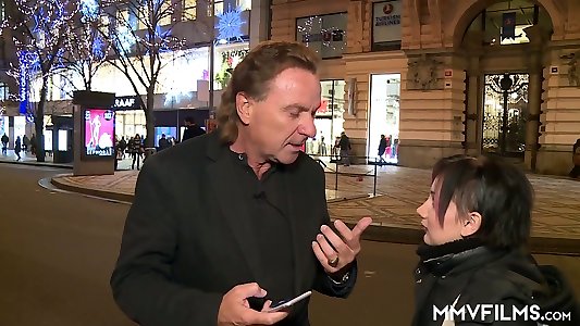Crazy old boy tempts young skank and plays with her cock-squeezing pussy