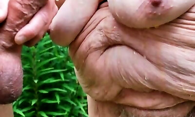 Overweight older pair twat fumbling and spunk fountain