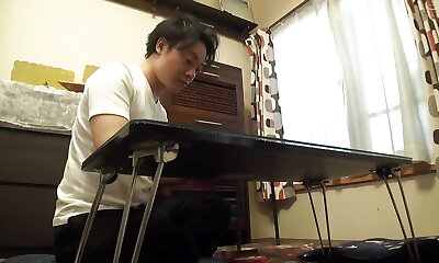 Step-mother noticed her stepson jerking off under the table and decided to help