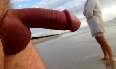 Public erection CFNM beach encounter between lady and male exhibitionist