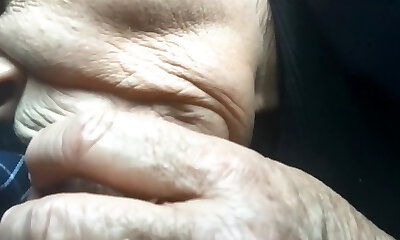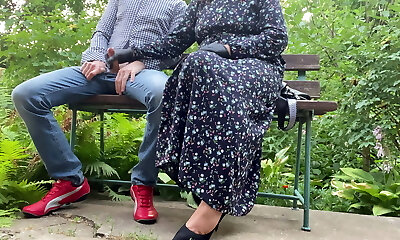 Hot Cougar Hj, Latex Glove, Cock, Outdoors, Glove for Cuckold Hubby