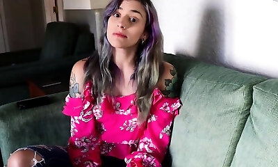 I find my step-sister searching under the bed and I can't help but ravage her in her sofa