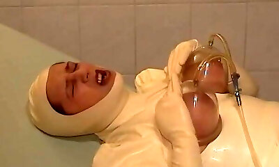 The Busty Latex Uniform Bitch - Blowjob Handjob with Latex Gloves - Cum in my Throat
